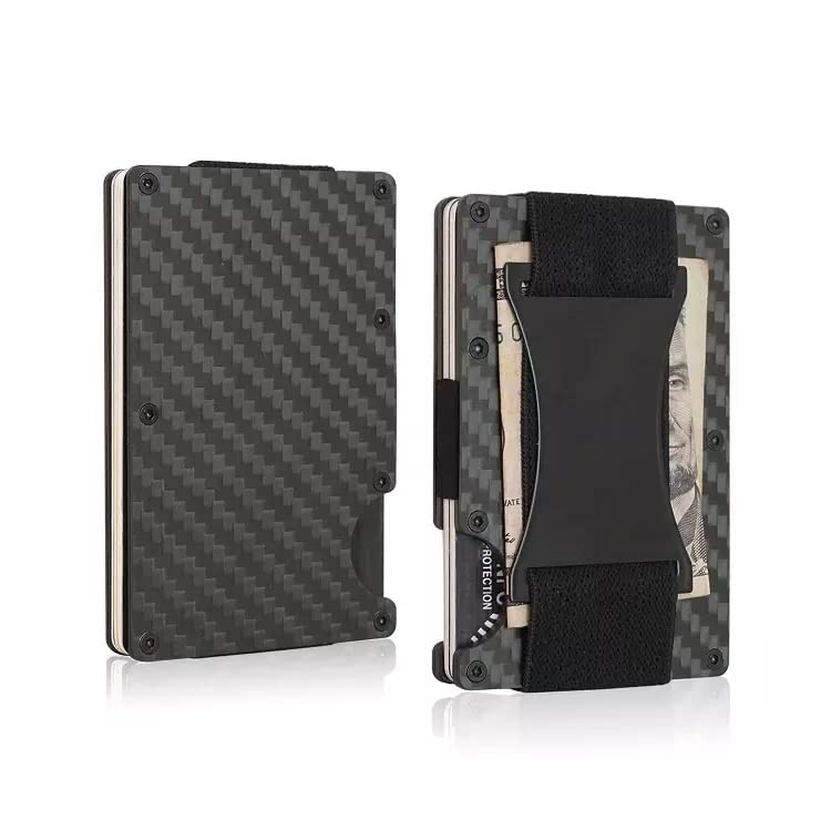 HOT ! Minimalist Metal Carbon Fiber RFID Blocking Wallet with Cash Strap