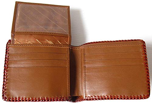 More information about Julie Genuine Real Bone Crocodile Skin Leather Man Bifold Golden Tan Knit Edges Wallet