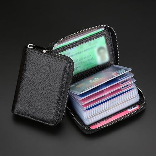 HOT ! Men’s Black Zipper Card Case 20 Card Slots, Document Card Holder for ID, Credit Cards, Business Cards
