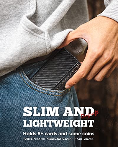 DUGRAFT Slim Card Wallet with Zippered Coin Pocket, Inner Aluminum Pop-Up Card Holder RFID Blocking for 1-6 Cards, Gift Packed for Men, Carbon Fiber 5
