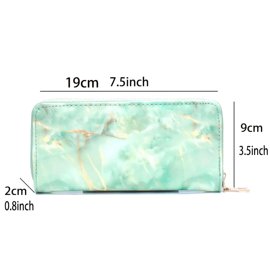 Marble Wallets for Men Women Unisex Fashion Travel Purse Rfid Blocking Clutch PU Leather Clips Cash,Phone,Card,ID Holder Zip Around Wallet (green) 5