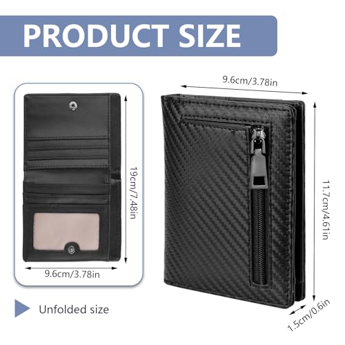More information about Slim Bifold Wallet for Men with Zipper Coin Pocket, Leather RFID Blocking Pouch, Black Compact Minimalist Front Pocket Wallets for Men with ID Window and 7 Card Slots (Black)
