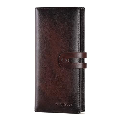 Men's Vintage Genuine Leather Long Wallet for Credit Cards RFID Blocking Mens Genuine leather Bifold Long Wallet with ID Window 11 Card Slots 6