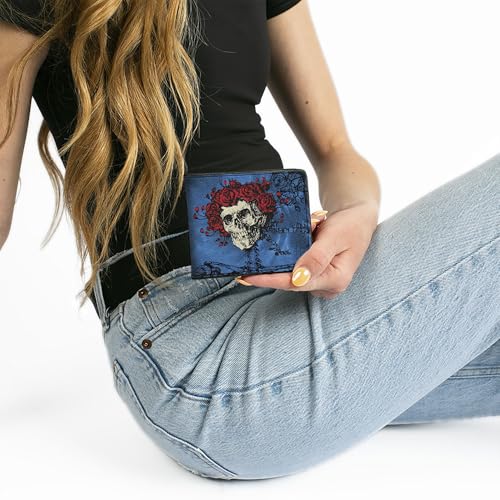 Buckle-Down Men's PU Bifold Wallet-Skull Grateful Dead/Roses Blues/Black/Red, Multicolor, 4.0" x 3.5" 3