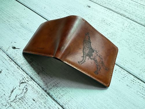 HOT ! Wolf geometric leather wallet, handcrafted bifold ID card style, small gift for dad
