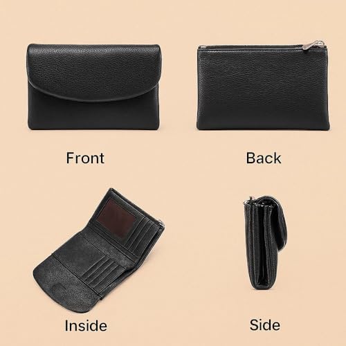 • 【Ample Storage with Coin Pocket】Multiple card slots plus ID window two bill compartments and snap‑close coin pouch organize money efficiently