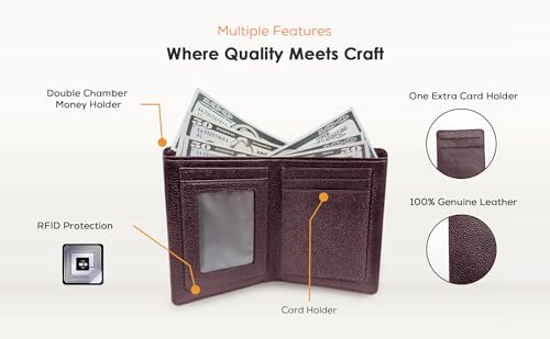 • ✅ FINEST LEATHER WALLETS FOR MEN - Our RFID mens wallet is handmade with top grain leather from Bangladesh that softens naturally with use and ages beautifully with time.