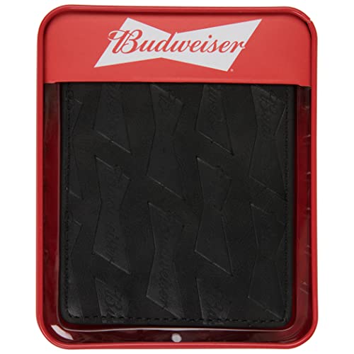 HOT ! AQUARIUS Budweiser Black Bifold Wallet AOP Bowtie Deboss with ID Window