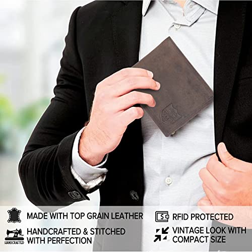 HOT ! LENTHER BULLS® Wallet for Men-Genuine Leather RFID Blocking Bifold Stylish Wallet 2 ID Window |Slim Minimalist Front Pocket |leather wallets |brown wallet.