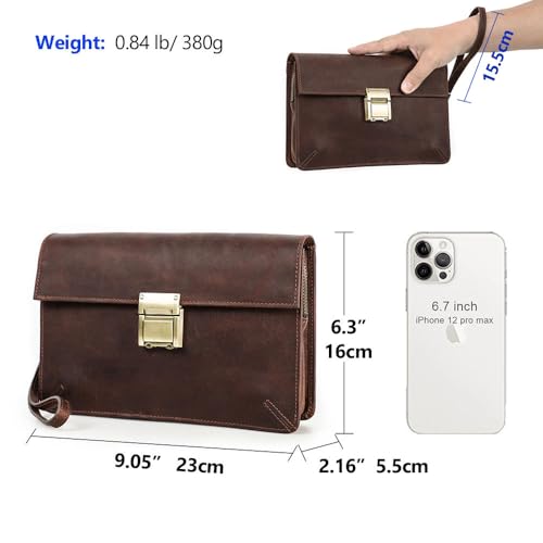 • FULL GRAIN LEATHER: Made of top grain crazy horse leather, clutch purse with wrist strap for men is durable, strong and has a retro luxury look