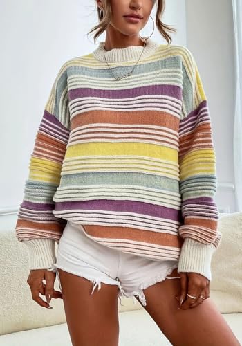 • Size Tips: S=US 4-6, M=US 8-10, L=US 12-14, XL=US 16-18, XXL=US 20; Constructed with comfort material, this women rainbow pullover sweater flexibility to accommodate various body shapes and sizes, effortlessly providing a flattering fit