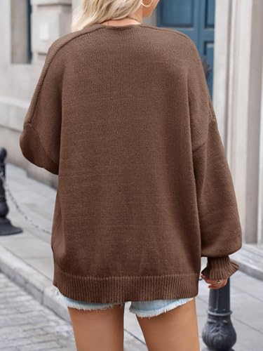 Saodimallsu Womens Oversized Open Front Cardigan Fall Ruffle Lantern Long Sleeve Chunky Knit Loose Sweater Coats 5