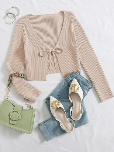 Floerns Women's Tie Front Long Sleeve Rib Knit Shrug Sweaters Cardigan Crop Top 1
