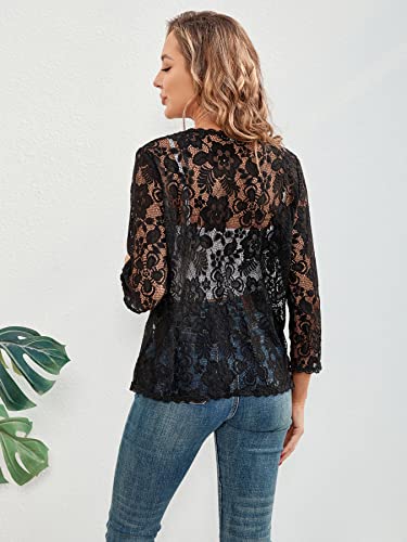 BENANCY Women's 3/4 Sleeve Bolero Shrugs Crochet Lace Open Cardigan 6