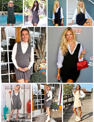 More information about HOTOUCH Women Sweater Vest Oversized V Neck Sleeveless Knit Pullover Ribbed Vest Dress with Pockets