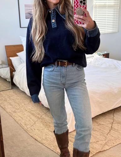 • Occasion: Trendy denim collar sweater for women, perfect for work, office, business, street, holiday, vacation, school, trip, weekend, party, daily