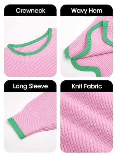 More information about Saodimallsu Womens Contrast Color Pullover Sweaters Crewneck Knit Tops with Wave Hem Long Sleeve Sweater Fall 2025
