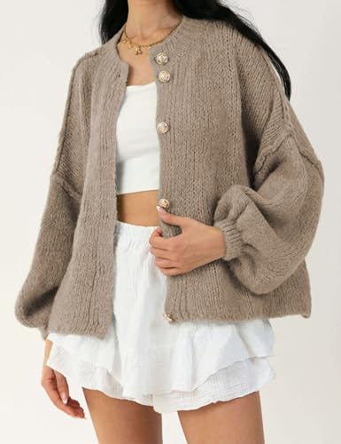 • Features: Long lantern sleeve cardigans, chic golden button down sweater coat, high-cut collar sweater cardigans, loose fit sweaters, overcut shoulders knit sweater jackets