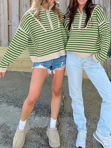 • Features - This women's striped sweater features a half zipper, long sleeves, a ribbed knit design, and a loose fit. It's perfect for daily wear, the office, outdoor activities, as well as vacations and trips.