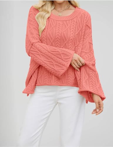 HOT ! yoeasy Womens Cropped Sweaters Oversized Cable Knit Crewneck Long Sleeve Pullover Trendy Casual Loose Sweater Tops