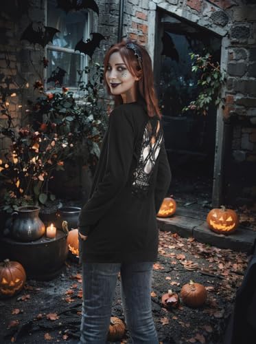 • ELEGANT DESIGN: Fall cardigans for women, halloween cardigans for women, with cute lace skull hollow out detail,long sleeve, combine with deep v-neck open front, stretchy,casual tops and lightweight cardigans for women. This kind of holiday cardigans for women is not too heavy,basic style but with sexy looks. A must women's fall fashion have in your wardrobe!