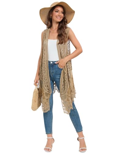 Sheer Cardigan Crochet Sleeveless Cover Up Mesh Patchwork Hippie Vest 5