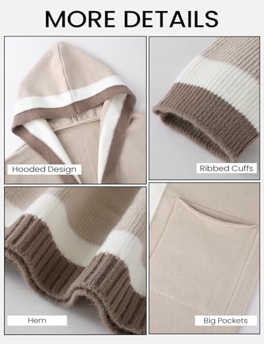 Yimoon Womens Long Cardigan Sweater Color Block Open Front Hooded Cardigan Oversized Knit Sweater Outwear 6