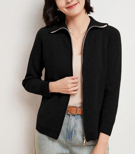 Zipper Cardigan Women Merino Wool Sweater Long Sleeve Casual Cashmere Knitwear Female Tops 4