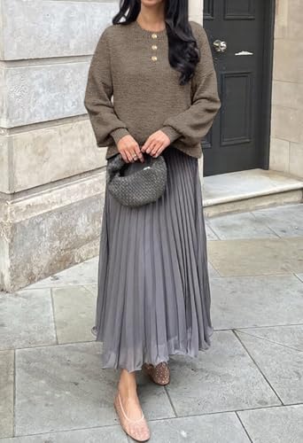 HOT ! MEROKEETY Women's 2025 Fall Oversized Sweaters Chunky Long Lantern Sleeve Buttoned Mock Neck Winter Knit Loose Pullover Tops
