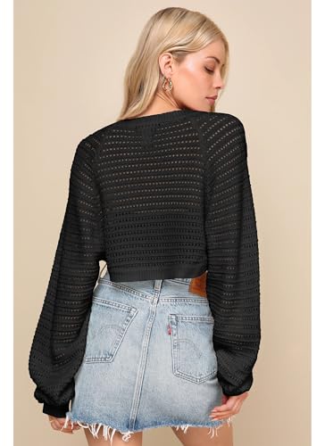 • Feature: The womens bolero shrug sweater feature long sleeve, open front, ribbed knitted, pointelle, solid color, loose fit, Y2k style, Lightweight pointelle knit shapes this shrug cardigan sweater that features an open front bodice with a perfectly cropped hem, all framed by long balloon sleeves. Ribbed knit accents the neckline, cuffs, and hem