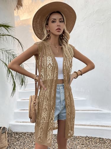 HOT ! Verdusa Women's Sleeveless Cardigan Summer Crochet Coverups Lightweight Knit Long Vest