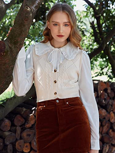 More information about Verdusa Women's Button Up Sleeveless Sweater Vest Cable Knit Crop Top Outerwear