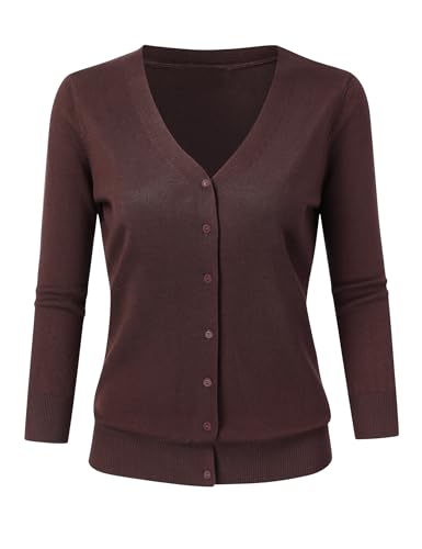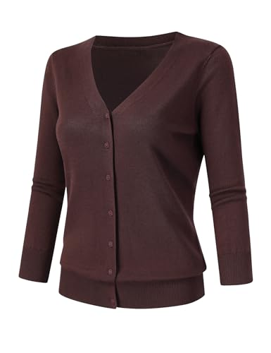 Leadingstar Women's 3/4 Sleeve Cardigan Lightweight Sweater Cardigan V-Neck Solid Color Soft Knit Sweater Tops 3