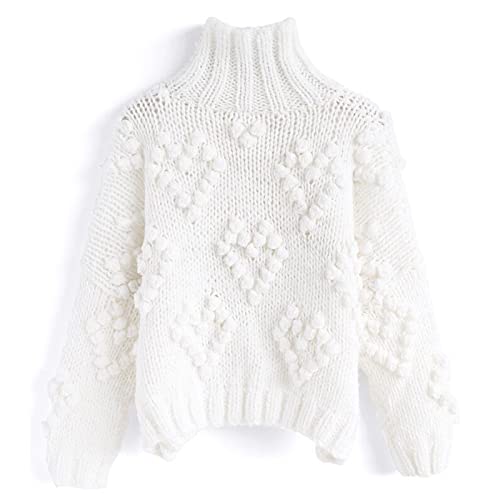 • [ Style Details ] Bring all the chic fun to fall with this lovely turtleneck sweater with yarn ball appliques in a solid white hue.