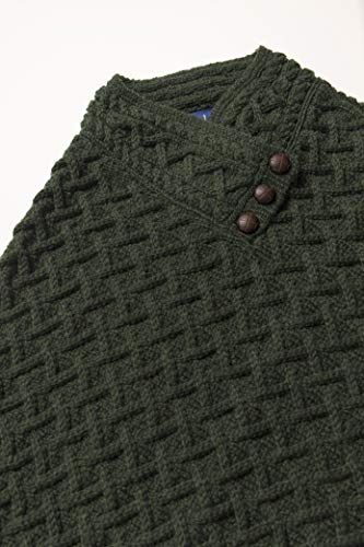 • SUPER SOFT STYLE: This beautiful poncho is made with our new super soft Merino Wool and knit using a traditional Cable lattice pattern. The addition of 3 football buttons on the collar allow the wearer to open or close for their preferred style. Irish knitwear from Aran Crafts is designed and created using traditional Aran stitches to bring you authentic Irish clothing for any occasion.