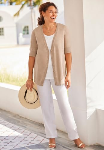 HOT ! Woman Within Plus Size Lightweight Short Sleeve V-Neck Cardigan