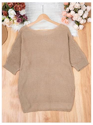 HOT ! MakeMeChic Women's Plus Size Sweater Boat Neck Half Sleeve Knitted Pullover Tops