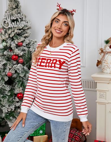 shermie Womens Stripes Sweaters Long Sleeve Crew Neck Casual Cute Heart Pullover Sweater 5