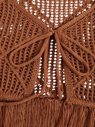 MakeMeChic Women's Cowboy Crochet Fringe Vest Vintage Hollow Out Tie Sleeveless Crop Knit Vest 6