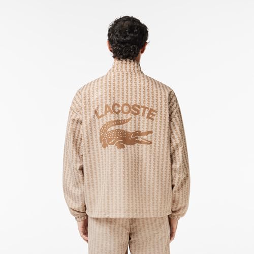 Lacoste Men's Long Sleeve Aop L Full Zip Hoodless Blouson Jacket W/Arm Stripes & Large Croc Back Graphic, Tbd, L/XL 1