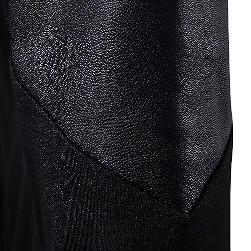Men's Knit Leather Patchwork Jacket Windproof Zip-Up Stand Collar Slim Fit Black Casual Jacket Outwear for Men 6