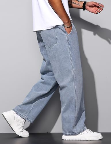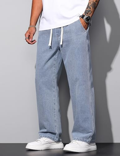 • 【Classic Design】Mens baggy jeans are designed with solid color, wide leg, drawstring closure, elastic waist, open bottom, two side pockets and two big and deep back pockets, a great gift for your husband, father, son, boyfriend and friends.
