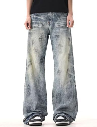 • Design:Y2k men jeans distressed jeans men wide leg denim pants grunge graphic jeans loose fit, 90s denim pants, classic pockets, button closure and zipper fly,y2K Harajuku style,baggy jeans never will out of style