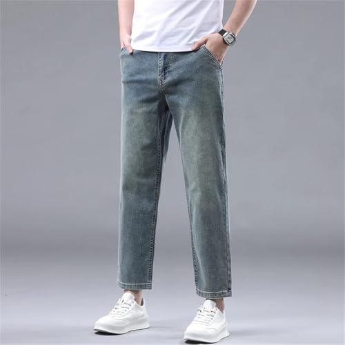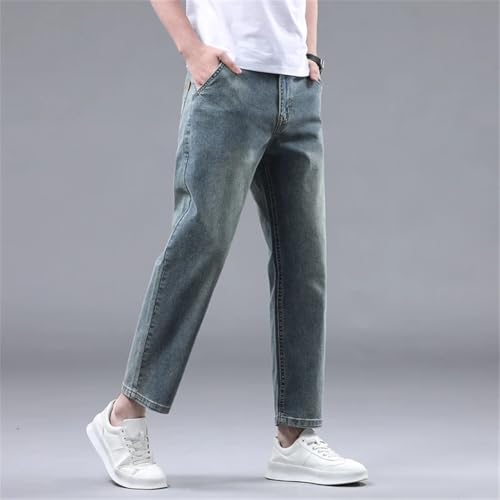 HOT ! Men Summer 95% Straight Thin Jeans Stretch Soft Fabric Light Blue Denim Ankle-Length Pants