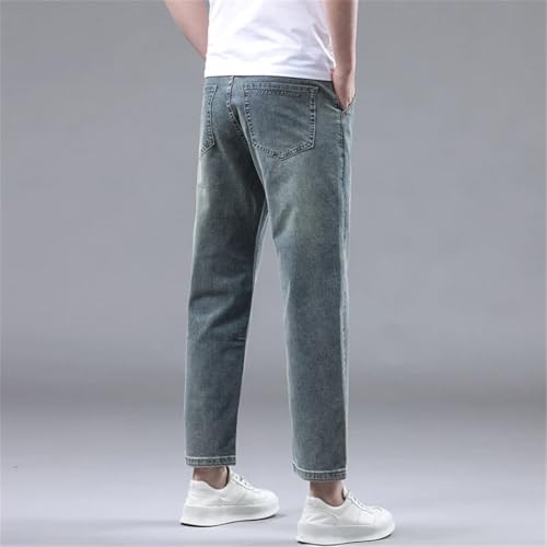 Men Summer 95% Straight Thin Jeans Stretch Soft Fabric Light Blue Denim Ankle-Length Pants 7