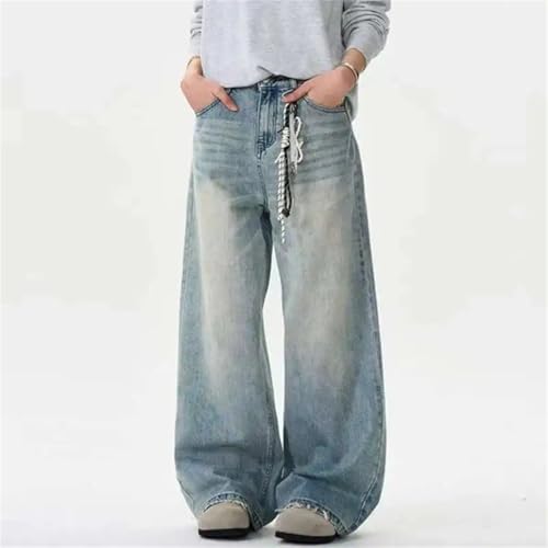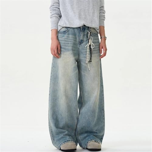 HOT ! Men Summer Distressed Jeans Solid Color Washing Loose Wide Leg Straight Moustache Effect Trousers