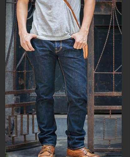 More information about Men’S Vintage Slim Fit Straight Cotton Selvedge Full Length Jeans Button Fly Midweight Rinsed Casual Wear Pants
