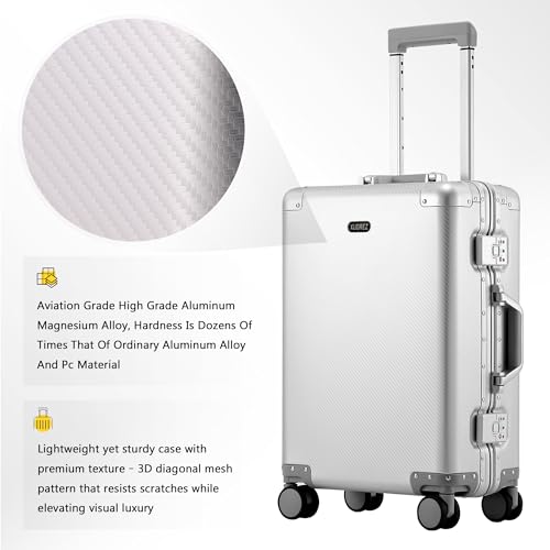 • 【Aerospace-Grade Aluminum Alloy Construction】100% seamless aluminum-magnesium shell delivers military-grade durability while staying 30% lighter than traditional metal luggage – perfect for strict airline weight limits.