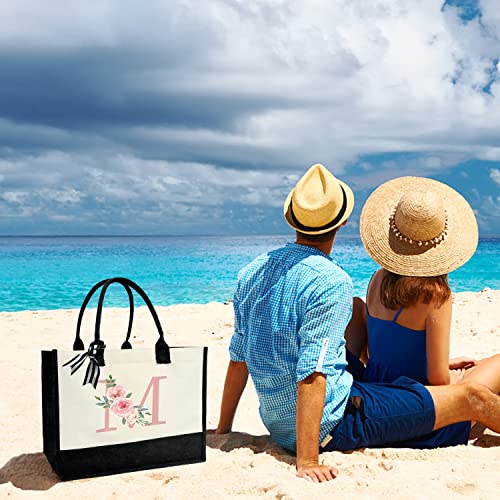 Personalized Initial Canvas Tote Bag for Women, Beach Bag with Inner Zipper Pocket for Wedding, Birthday, Holiday 6