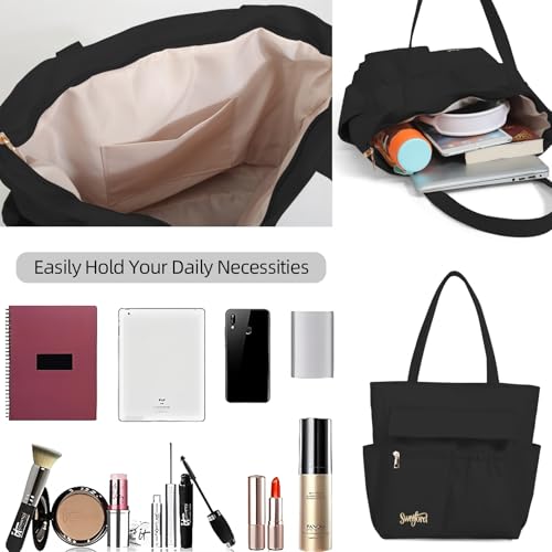 HOT ! Large Tote Bag for Women, Multi Pocket Casual Shoulder Bag with Zipper, Heavy Duty Everyday Tote for Work, Gym, Beach & More